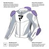 Kurtka wykonana jest z najwyższej jakości skóry bydlęcej i wytrzymałego materiału stretch, co zapewnia trwałość i pełną swobodę ruchów. Kamizelka windblock dodatkowo chroni przed wiatrem, co zwiększa komfort jazdy w zmiennych warunkach pogodowych.