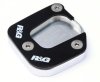 Poszerzenie stopki bocznej R&G Kickstand Shoe zwiększa powierzchnię dolnej części stopki. Dzięki temu motocykl stoi stabilnie na miękkim, a nawet sypkim podłożu – rozgrzanym asfalcie, trawie, ziemi itp. Dolna część poszerzenia wykonana jest z aluminium, co zapobiega korozji po kontakcie z podłożem. Górną wykonano ze stali nierdzewnej. Szybki montaż za pomocą kilku śrub. Zamontowane poszerzenie stopki nie zmniejsza prześwitu pod motocyklem i nie styka się z pracującym łańcuchem napędowym.