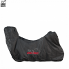 Czarny pokrowiec dla motocykli i skuterów z montowanym bagażnikiem