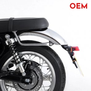 Akcesoryjny uchwyt tablicy rejestracyjnej R&G Fender Eliminator pozwala zrezygnować z fabrycznego, masywnego tylnego błotnika, co mocno poprawia wygląd maszyny. Uchwyt wykonany jest ze stali nierdzewnej i/lub aluminium i malowany proszkowo. Pozwala na zamontowanie tablicy rejestracyjnej blisko ogona motocykla, nadając mu lekką, minimalistyczną linię. W komplecie homologowane oświetlenie LED. Uchwyty R&G Fender Eliminator przeznaczone są do użytku w krajach, w których stosuje się małe tablice rejestracyjne – np. w Wielkiej Brytanii (18 cm wysokości). Dają możliwość montażu oryginalnych lub akcesoryjnych kierunkowskazów. Kolor: czarny.