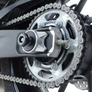 Mocowane bezpośrednio do tylnej osi slidery R&G Spindle Sliders pełnią podwójną rolę. Chronią oś tylnego koła, wahacz, tylną zębatkę oraz zacisk hamulca w razie wywrotki, a także umożliwiają postawienie motocykla na stojaku serwisowym. Mają formę grubych rolek z twardego tworzywa. Łatwe w montażu i estetyczne. Kolor: czarny.