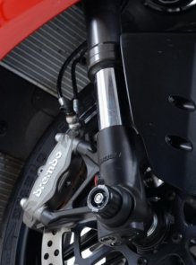 Slidery widelca R&G Fork Protectors w formie masywnych rolek montowanych na przedniej osi. Chronią widelec i przednie zaciski hamulcowe przed uszkodzeniami w czasie wywrotki i ślizgu. Wykonane z wytrzymałego tworzywa. Łatwe w montażu i estetyczne, nie psują wyglądu motocykla.