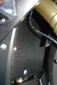 Najwyższej jakości osłona chłodnicy R&G Radiator Guard. Wykonana z jednego arkusza lekkiego aluminium, z wyciętymi laserowo licznymi sześciokątnymi otworami, zapewniającymi niezakłócony przepływ powietrza. Najlepszy stosunek masy do wytrzymałości. Łatwa w montażu, idealnie dopasowana do motocykla, nie wymaga dodatkowych modyfikacji. Malowana proszkowo, odporna na korozję.