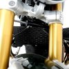Osłona chłodnicy oleju R&G Oil Cooler Guard jest wykonana z tłoczonego aluminium i ma estetyczną, bezszwową formę. Chroni chłodnicę przed lecącymi spod przedniego koła kamieniami, żwirem i drobnymi przedmiotami, a także poprawia wygląd motocykla. Nie wymaga ingerencji w konstrukcję chłodnicy. Kolor: czarny