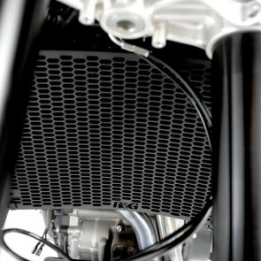 Najwyższej jakości osłona chłodnicy R&G Radiator Guard. Wykonana z jednego arkusza lekkiego aluminium, z wyciętymi laserowo licznymi sześciokątnymi otworami, zapewniającymi niezakłócony przepływ powietrza. Najlepszy stosunek masy do wytrzymałości. Łatwa w montażu, idealnie dopasowana do motocykla, nie wymaga dodatkowych modyfikacji. Malowana proszkowo, odporna na korozję.
